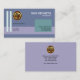 Design features two light blue vertical line (the rebars) on a light purple column (the ground) and a cyan rectangle (the building). Your prestigious name and job title sit above this building with the contact details inside it. Westwards to the base of the rebars are your slogan option with the gold logo and business name northwards.