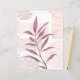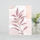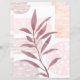 An abstract watercolor featuring patterned shapes and a botanical in a palette of maroon and soft calming colours.