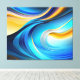 This stretched canvas wall art is shown with a colourful abstract art print.