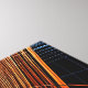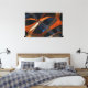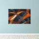 This stretched canvas wall art is shown with a colourful abstract art print.