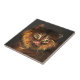 Cat face photo fractalized into a neon abstract kitty image ceramic tile