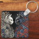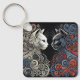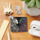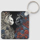 Two cat faces, one white and one black, facing each other. Each cat is adorned with intricate, swirling patterns that create a dynamic and fluid appearance. The background is dark, highlighting the contrast between the light and dark cats and their decorative elements.