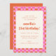 Abstract Chequered Art Pink Orange 21st Birthday Invitation