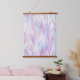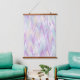 An abstract chevron design in a purple, turquoise, ivory and white palette.