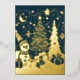 Abstract Christmas Theme Snowman Gold Foil Holiday Card