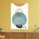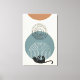Abstract circles and arches with moody black cat. Colours of cream, dusty blue, terracotta and black.