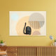 Abstract shapes, circles and arches with moody black cat. Colours of cream, tan, dusty blue, terracotta and black.