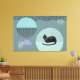 Abstract circles and arches with moody black cat. Colours of cream, dusty blue, purple and black.
