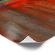 Abstract cityscape with tall, colorful skyscrapers evokes a sense of urban dynamism. The blend of blues, reds, and oranges creates a vibrant atmosphere.