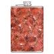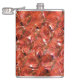 Stamped abstract red with spots and crooked style. It may also look like some plastic or red plastic 'burnt' and crumpled.