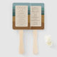 Modern wedding program hand fan featuring your details over an abstract coastal background.