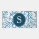 This abstract desk mat was designed using my original watercolor sea coral in shades of blue over a white background. Customise with your monogram initial in white over navy blue. Or add in your logo. A unique desk decoration idea for your coastal themed home office and small business.