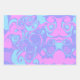 These wrapping paper sheets have an abstract swirl pattern with different colors. One sheet had a white blue color theme, another has a golden yellow color theme, and the third one has a blue pink purple color theme.