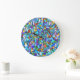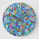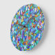 Abstract Colourful Blue Mosaic Pattern Large Clock