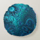Abstract Colourful Blue & Teal Spiral Pattern Round Cushion