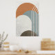Abstract Boho rainbow wall art with arches in brown, beige, orange, and blue colours.