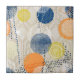 Abstract colourful polka dot pattern. Large textured blue, orange peas and black small dots on a beige background.