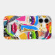 This bold and energetic phone case features an abstract woman's face rendered in a high-impact pop art collage style. Bursting with vibrant primary colours, neon highlights, and layered textures, this maximalist artwork is a true statement piece.