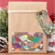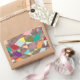 A confetti tapestry of colours form this abstract design. Background in silver purple glitter.