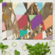 A confetti tapestry of colours form this abstract design. Background in gold foil.