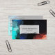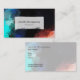 Modern professional business cards with a contemporary style abstract design. Paint splatters and swirling colours in turquoise blue, white, orange and black with hints of blue.