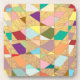 A confetti tapestry of colours form this abstract design. Background textured sun burst pattern.