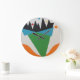 This abstract artwork combines time and celebration through a confetti-like cone radiating around a clock motif. Bright, expressive colors contrast with the structured circular form, balancing spontaneity and order. A contemporary exploration of rhythm, movement, and the passing of moments.