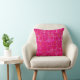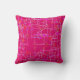Throw pillow in a modern geometric, abstract constellation / starry sky print in shades of pink, violet, crimson and silver on a deep fuchsia pink background