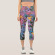 Abstract Coral, Pink Green and Aqua Garden Foliage Capri Leggings
