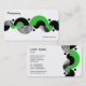 A business/profile card template with an abstract motif made up of crescent shapes and circular spots running horizontally. Company name and business type on the front. Name and all other contact on the reverse with a vertical version of the motif on the right. Ready to be customised with your details, suitable for many types of business.