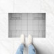 This design features an illustration in various shades of grey that shows squares building up into cubes.