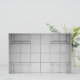 This design features an illustration in various shades of grey that shows squares building up into cubes.