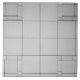 This design features an illustration in various shades of grey that shows squares building up into cubes.
