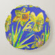 Abstract Daffodil Yellow Blue Flowers Floral Art Round Cushion