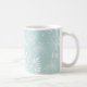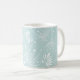 Cool modern stylised dandelion pattern in white on pastel blue background.