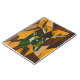 A stylish notebook with with an deer on an orange and brown background in a modern abstract design style.