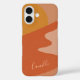 This stylish phone case features a vibrant and colourful illustration of a desert mountain landscape at sunset in burnt orange, terracotta, and yellow, personalised with your name.