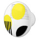 Abstract design illustration with geometrical (circles and stripes) shapes decoration in yellow and black colours on white background.