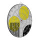 Abstract design illustration with geometrical (circles and stripes) shapes decoration in yellow and black colours on white background.