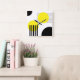 Abstract design illustration with geometrical (circles and stripes) shapes decoration in yellow and black colors on white background.