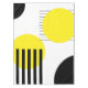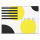 Abstract design illustration with geometrical (circles and stripes) shapes decoration in yellow and black colours on white background.
