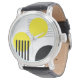 Abstract design illustration with geometrical (circles and stripes) shapes decoration in yellow and black colours on white background.