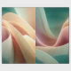 The image showcases a close-up of abstract waves formed by fabric. The fabric features a subtle texture and is colored in pastel shades of teal, pink, and peach. The waves create a sense of movement and depth. The lighting is soft and diffused, enhancing the gentle and calming mood of the image. The background is blurred, focusing attention on the fabric's form and color transitions.
