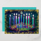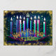 Abstract Drawing Menorah Festival of Lights Blue Foil Holiday Card