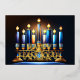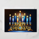 Abstract Drawing Menorah Happy Hanukkah Gold Blue Foil Holiday Card