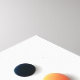 The image displays an abstract art piece featuring a dynamic arrangement of shapes and lines that evoke a sense of fluid motion. At the centre, there are curving forms with alternating layers of peach, cream, and navy blue colours that resemble waves or organic structures. Interspersed throughout the composition are spherical elements in various sizes, coloured in shades of blue, black, peach, and cream. These orbs appear to float around the central forms, contributing to the overall impression of buoyancy and movement. The background is a soft off-white colour which enhances the three-dimensional effect created by shadows beneath each element. This artwork’s use of colour gradients and overlapping shapes creates depth and a harmonious balance between movement and stillness.