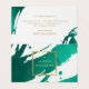 Dark, emerald green paint brushstrokes create an abstract backdrop on this designer business card template. Your name or business name is displayed in a faux gold box on the front for a modern aesthetic. This folded business card gives you twice the room to add additional text, use for aftercare instructions, for promotional uses, and more. A fun, eye-catching card for creative professionals. Art and design © 1201AM Design Studio | www.1201am.com