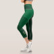 Elegant stylish Capri leggings design featuring an abstract deep green layered background decorated with gold circle ornaments.
