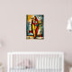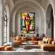 This abstract expressionist artwork reinterprets a surfboard as a symbolic vertical form through bold geometry and expressive textures. Vibrant colors and dynamic lines emphasize emotion and abstraction over literal representation, creating a striking modern piece for creative interiors and contemporary spaces.
