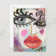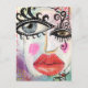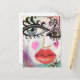 This bright, colourful postcard was created with my original collage art featuring a cool abstract face with big bold eyes, neon pink cheeks and vibrant red lips in a grungy, fun graffiti style purple background with a whimsical touch of black and white stripes. These little works of art are not only great to send through the mail, they are also an inexpensive way to collect all the pieces you love and look great framed and matted.